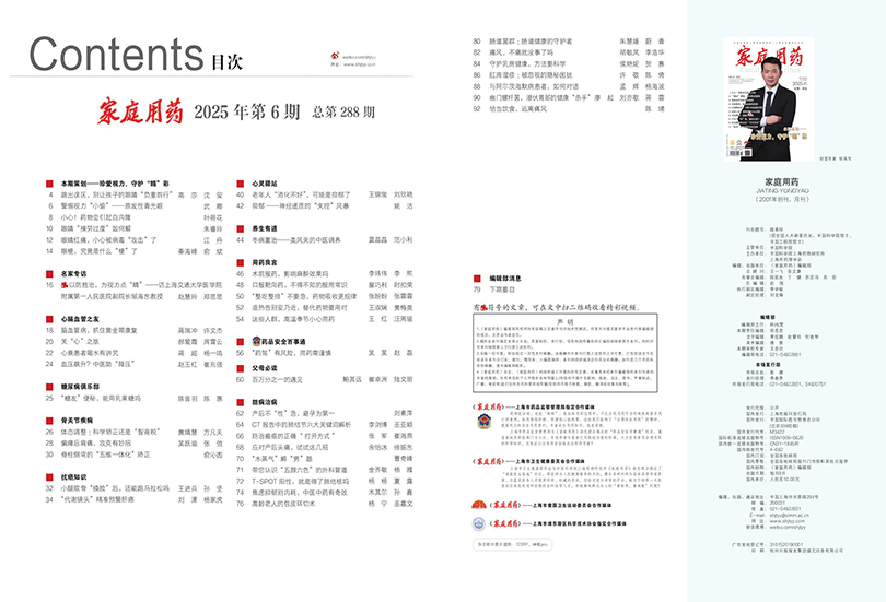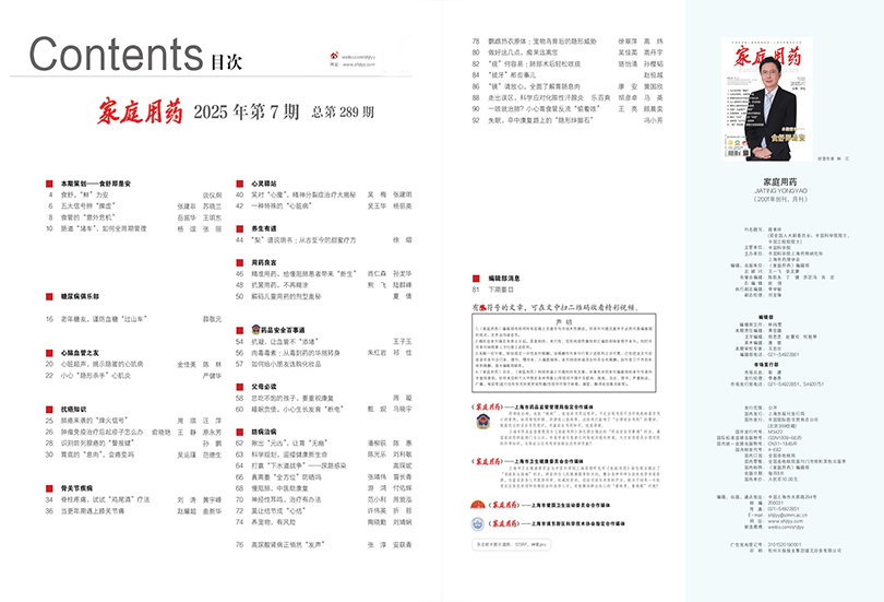 《家庭用药》杂志是一本专注于普及医学知识、传播健康理念的科普读物,旨在帮助读者正确理解疾病、合理用药,提高家庭健康水平。自创刊以来,杂志以其实用、贴近、权威的特点,赢得了广大读者的喜爱,成为我国医药健康领域的知名期刊。