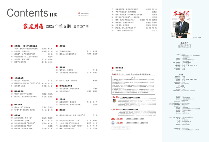 《家庭用药》杂志内容丰富多样,包括疾病解析、用药指导、保健知识、心理辅导等多个方面。杂志通过通俗易懂的语言,将复杂的医学知识转化为读者易于理解的内容,使读者能够在生活中更好地应对各种健康问题。此外,杂志还邀请国内外知名医学专家撰写专栏,针对热点健康问题进行深入剖析,为读者提供权威、专业的指导。